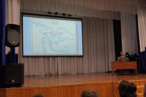 В актовом зале 4 корпуса университета состоялась встреча студентов и курсантов университета и Судомеханического техникума с Непомнящей Натальей Николаевной, старшим научным сотрудником отдела истории Великой Отечественной войны Восточно-Крымского историко-культурного музея-заповедника.