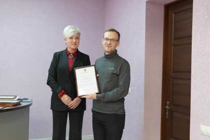 Проректор Глечикова Татьяна Олеговна также вручила благодарность от Председателя Государственного совета молодёжной политики Республики Крым Зинченко Алексея Сергеевича за многолетний добросовестный труд и значительный личный вклад в реализацию государственной молодёжной политики и развитие системы поддержки молодёжных инициатив на территории Республики Крым, а также благодарственное письмо от Коршутова Альберта Абдурашитовича, заместителя Председателя Совета министров Республики Крым – министра внутренней политики, информации и связи Республики Крым за активную гражданскую позицию, развитие добровольческой деятельности и вклад в реализацию молодёжной политики на территории Республики Крым Кибенко Владимиру Александровичу, начальнику Управления перспективного развития молодежи.