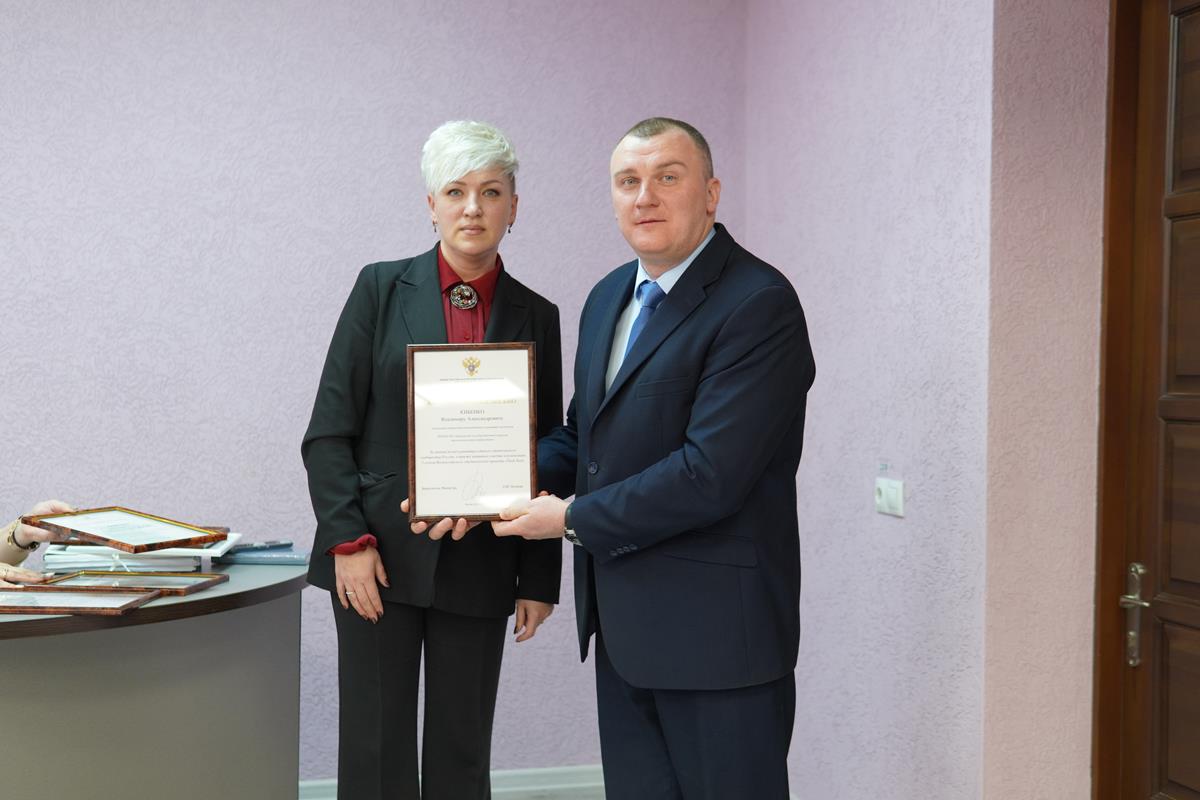 Ректор отметил значительный вклад и вручил благодарность от заместителя Министра науки и высшего образования Российской Федерации Петровой Ольги Викторовны за личный вклад в развитие единого студенческого сообщества России, а также активное участие в реализации 5 сезона Всероссийского студенческого проекта «Твой Ход» Глечиковой Татьяне Олеговне, проректору по экономике, молодёжной политике и перспективному развитию отраслевого направления.